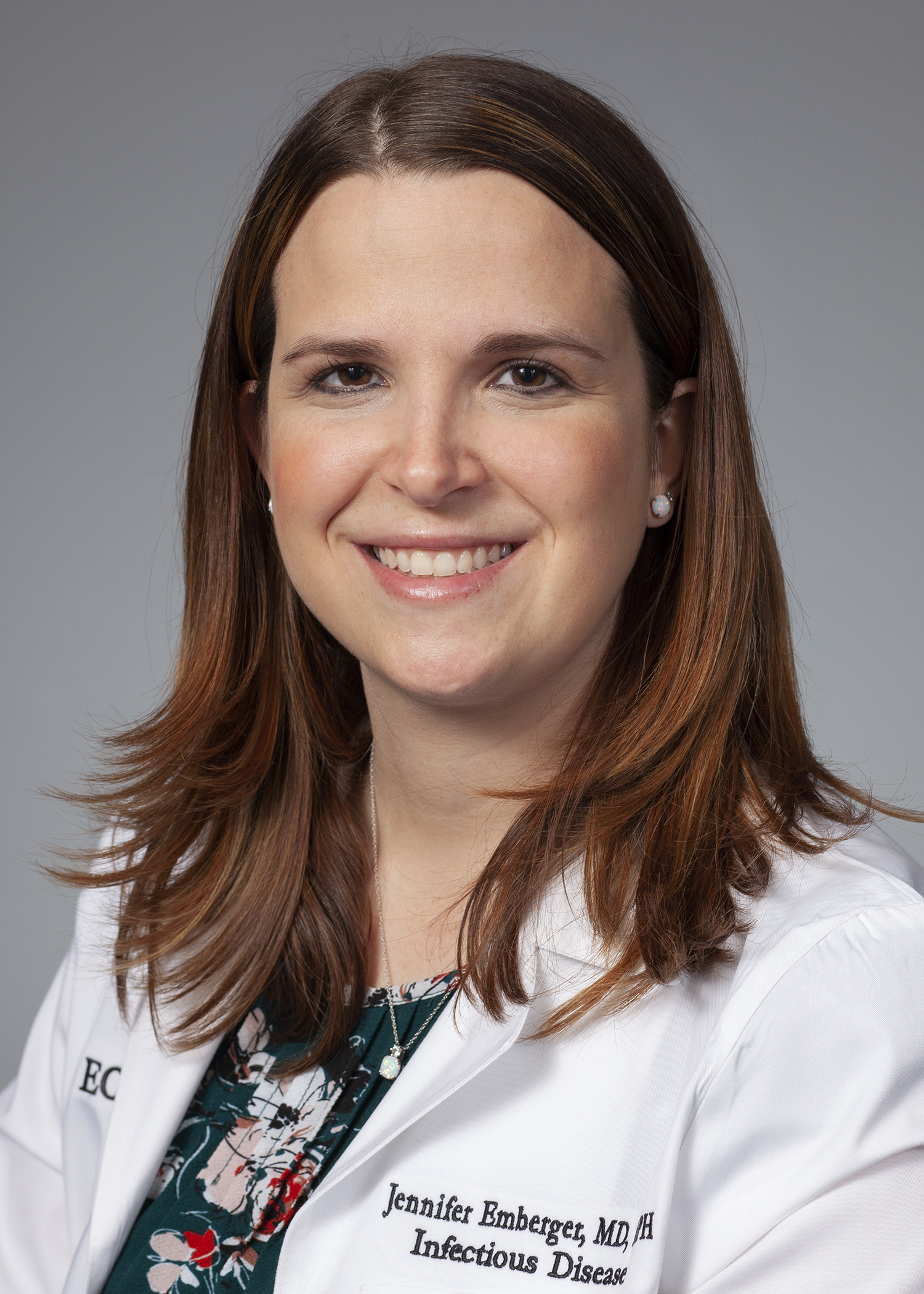 Jennifer Emberger, MD, serves as the vice president. She is a practicing infectious disease physician and clinical assistant professor at East Carolina University/ECU Health Medical Center.